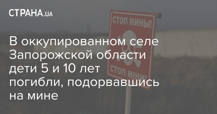 В оккупированном селе Запорожской области дети 5 и 10 лет погибли, подорвавшись на мине