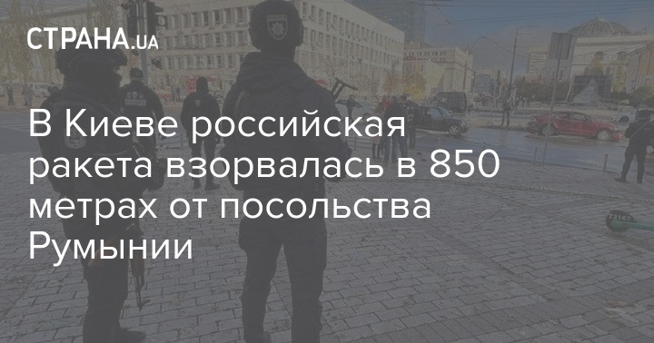 Во время массированного обстрела территорий Украины в понедельник, 10 октября, в Киеве в 850 метрах от посольства Румынии взорвалась российская ракета.
