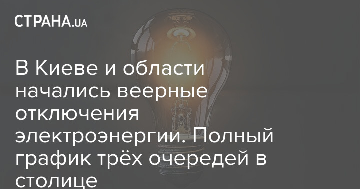 В Киеве и области начались веерные отключения электроэнергии. Полный график трёх очередей в столице