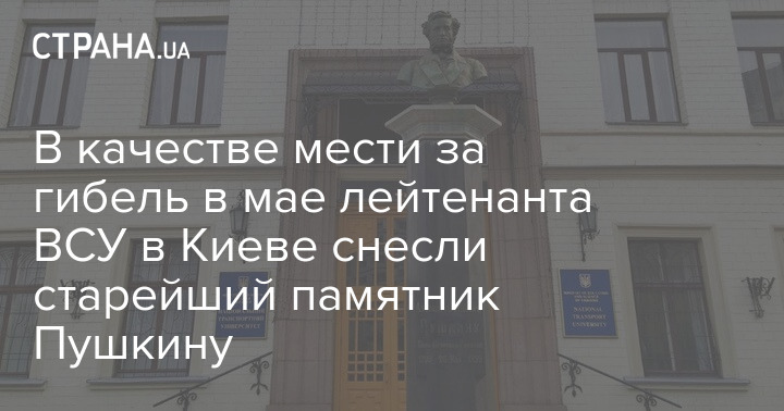 В Киеве снесли один из памятников классику русской литературы Александру Пушкину. Он был установлен у входа в Национальный транспортный университет на улице Омельяновича-Павленко в Печерском районе.