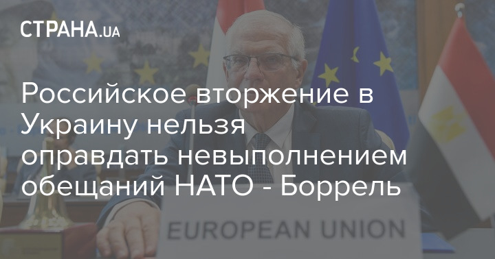 Глава дипломатии ЕС Жозеп Боррель заявил, что вторжение РФ в Украину нельзя оправдать тем, что НАТО якобы не выполнило свои обещания перед Москвой.