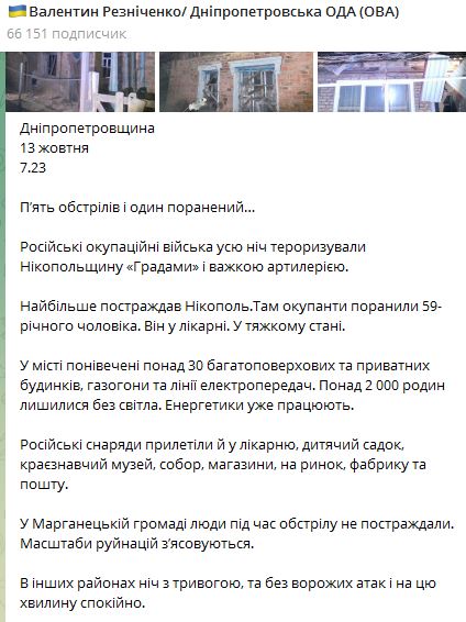 Ночью Никопольский район Днепропетровской области вновь был под обстрелами РФ  из "Градов" и тяжелой артиллерии. Больше всего пострадал Никополь.