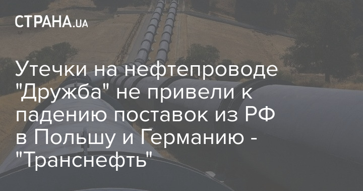 В результате утечки на польском участке нефтепровода "Дружба" нет падения поставок из России ни в Польшу, ни в Германию. Об этом сообщает российская компания "Транснефть".