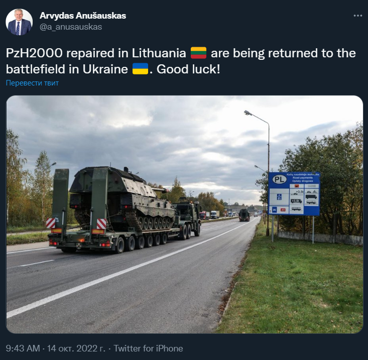 Литва отремонтировала для Украины поврежденные во время военных действий самоходные артиллерийские установки Panzerhaubitze 2000, полученные Киевом от Германии.