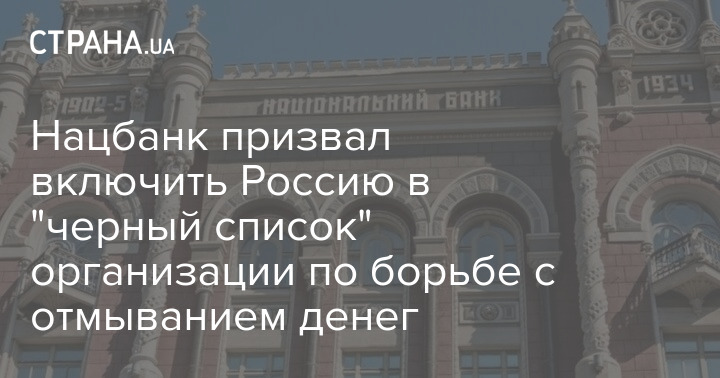 Нацбанк Украины обратился в Международную группу по противодействию отмыванию грязных денег с призывом исключить РФ из числа стран-членов FATF и включить Россию в черный список FATF