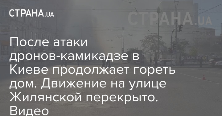 После атаки дронов-камикадзе в Киеве продолжает гореть дом. Движение на улице Жилянской перекрыто. Видео