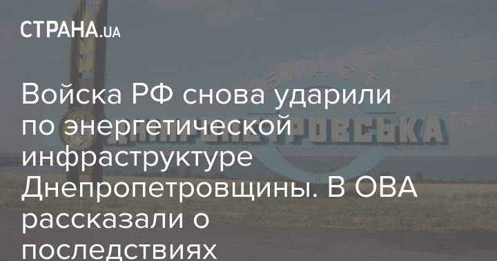Войска РФ снова ударили по энергетической инфраструктуре Днепропетровщины. В ОВА рассказали о последствиях