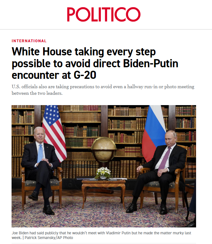 Официальные лица США предпринимают шаги, чтобы между Джо Байденом и Владимиром Путиным не было личной встречи в рамках саммита G-20.