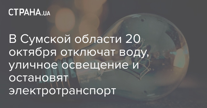 В Сумской области 20 октября отключат воду, уличное освещение и остановят электротранспорт