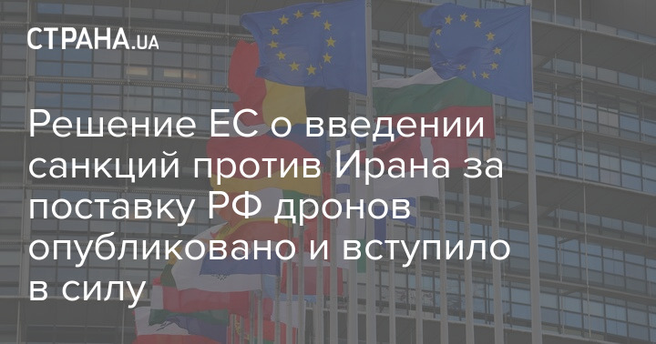 Решение ЕС о введении санкций против Ирана за поставку РФ дронов опубликовано и вступило в силу