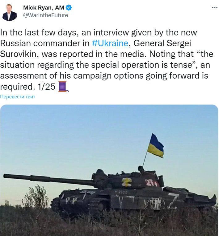Генерал австралийской армии в отставке Мик Райан прокомментировал интервью российского командующего в Украине Сергея Суровикина и рассказал, чего можно ожидать от армии России в ближайшие месяцы.