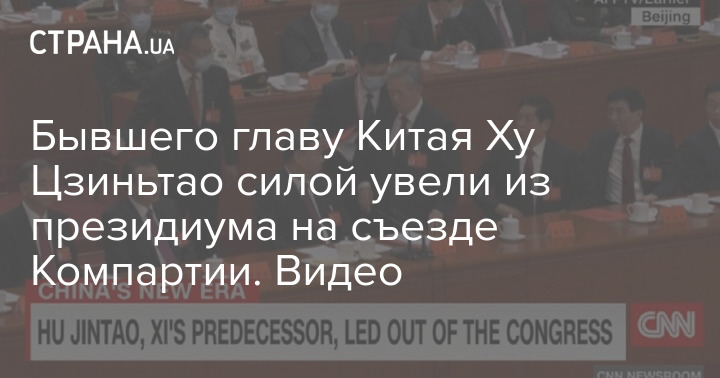 На видео видно как прямо из президиума на глазах у всех делегатов съезда под руку уводят бывшего руководителя Китая Ху Цзиньтао.
