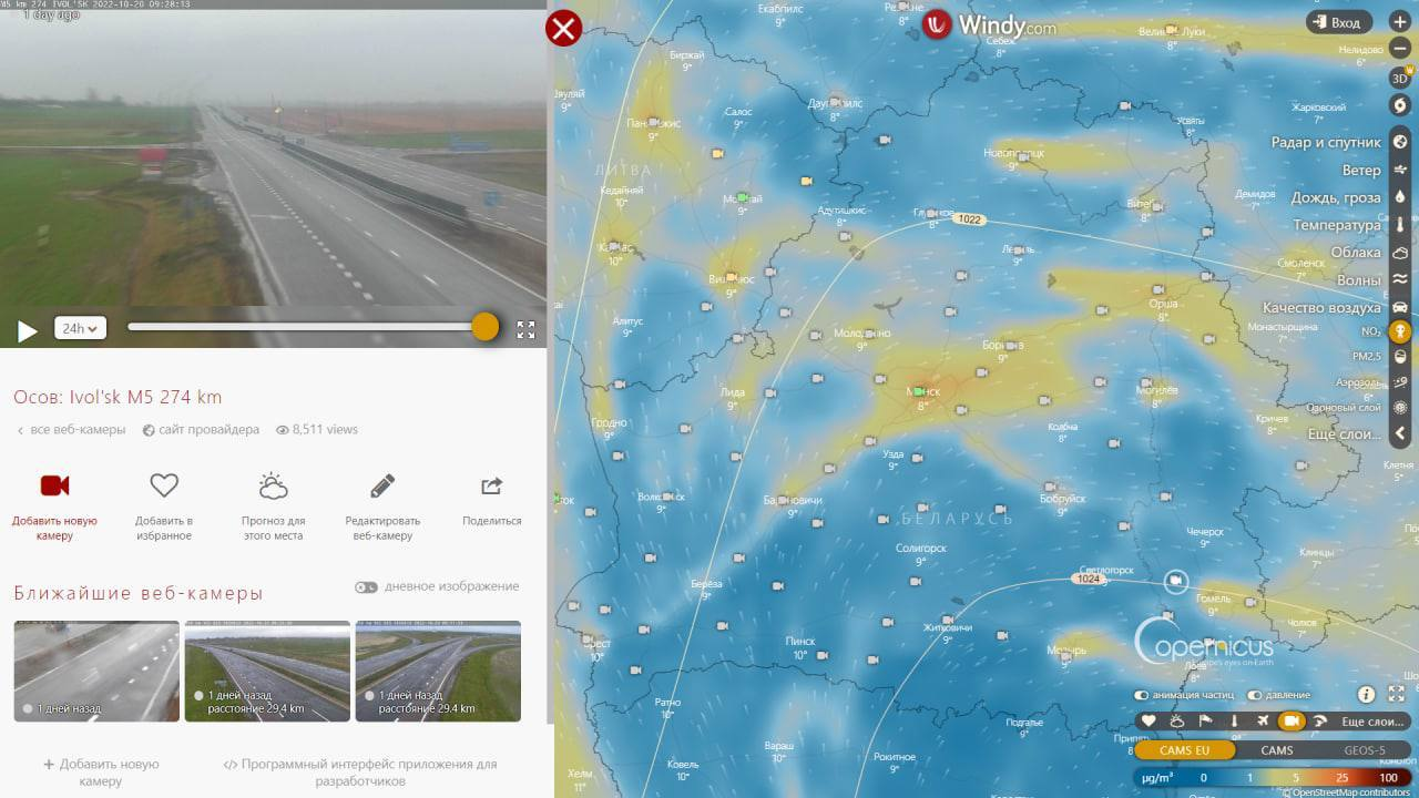 Однако изображение с камер можно было посмотреть на погодном сервисе windy.com. Вчера произошло отключение доступа к камерам и на нем.