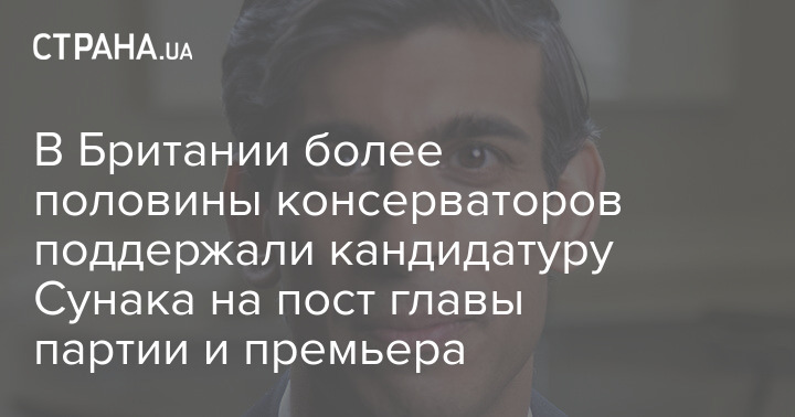 Кандидатуру бывшего главы Министерства финансов Британии Риши Сунака на пост главы Консервативной партии и премьер-министра Великобритании поддержало больше половины членов парламентской фракции консерваторов.