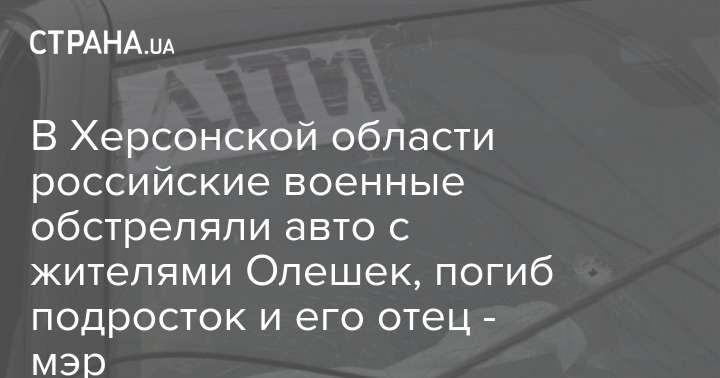 В понедельник, 24 октября, российские военные обстреляли машину с жителями Олешек в Херсонской области. Двое взрослых погибли, ребенок травмирован.