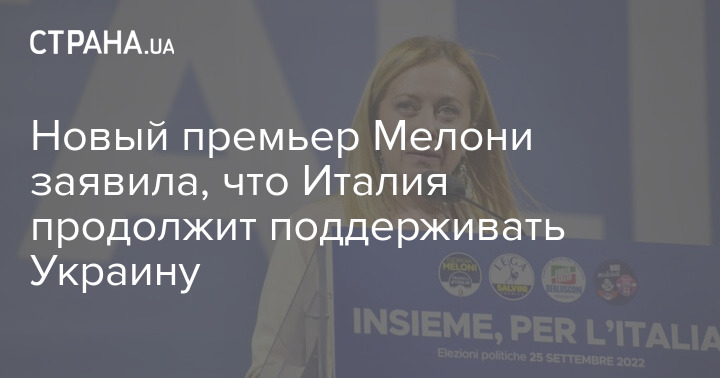 Новый премьер Мелони заявила, что Италия продолжит поддерживать Украину