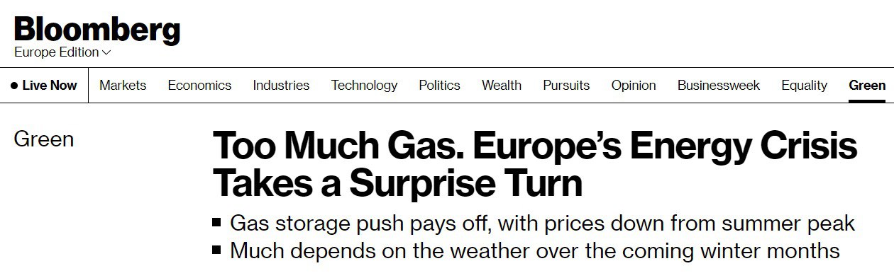 Объемы запасенного к зиме газа в Европе превысили ее потребности, газовые хранилища в регионе практически заполнены.