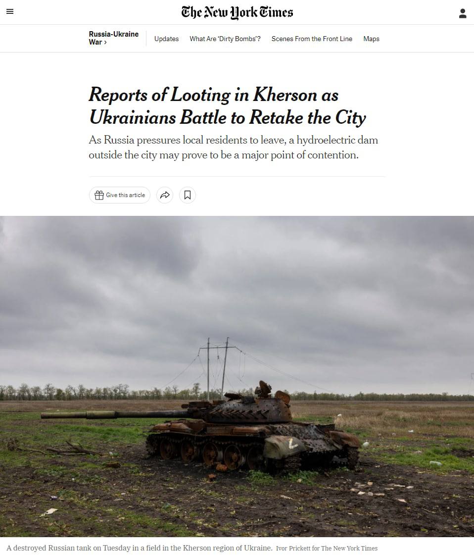 При этом нет признаков, что Россия готовится покидать Херсон, что указывает на то, что РФ намерены воевать за город - пишет New York Times.
