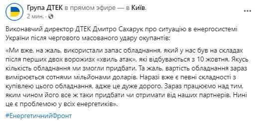 "Приготовьтесь к длительному отсутствию электроэнергии", - сообщил глава Киевской областной военной администрации Алексей Кулеба.