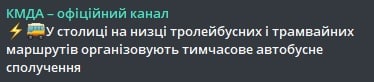В понедельник, 31 октября, в Киеве на ряде троллейбусных и трамвайных маршрутов запущены автобусы на фоне дефицита электроэнергии из-за утренних ударов по области.