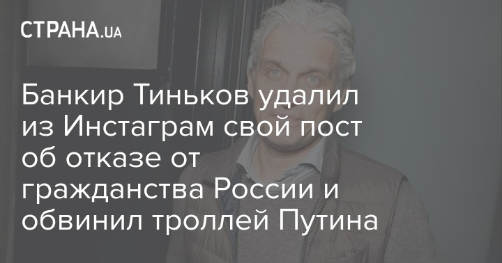 Банкир Тиньков удалил из Инстаграм свой пост об отказе от гражданства России и обвинил троллей Путина