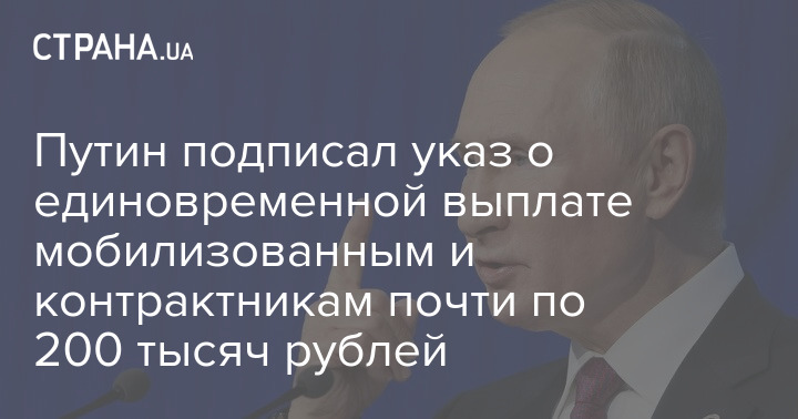 Путин подписал указ о единовременной выплате мобилизованным и контрактникам почти по 200 тысяч рублей