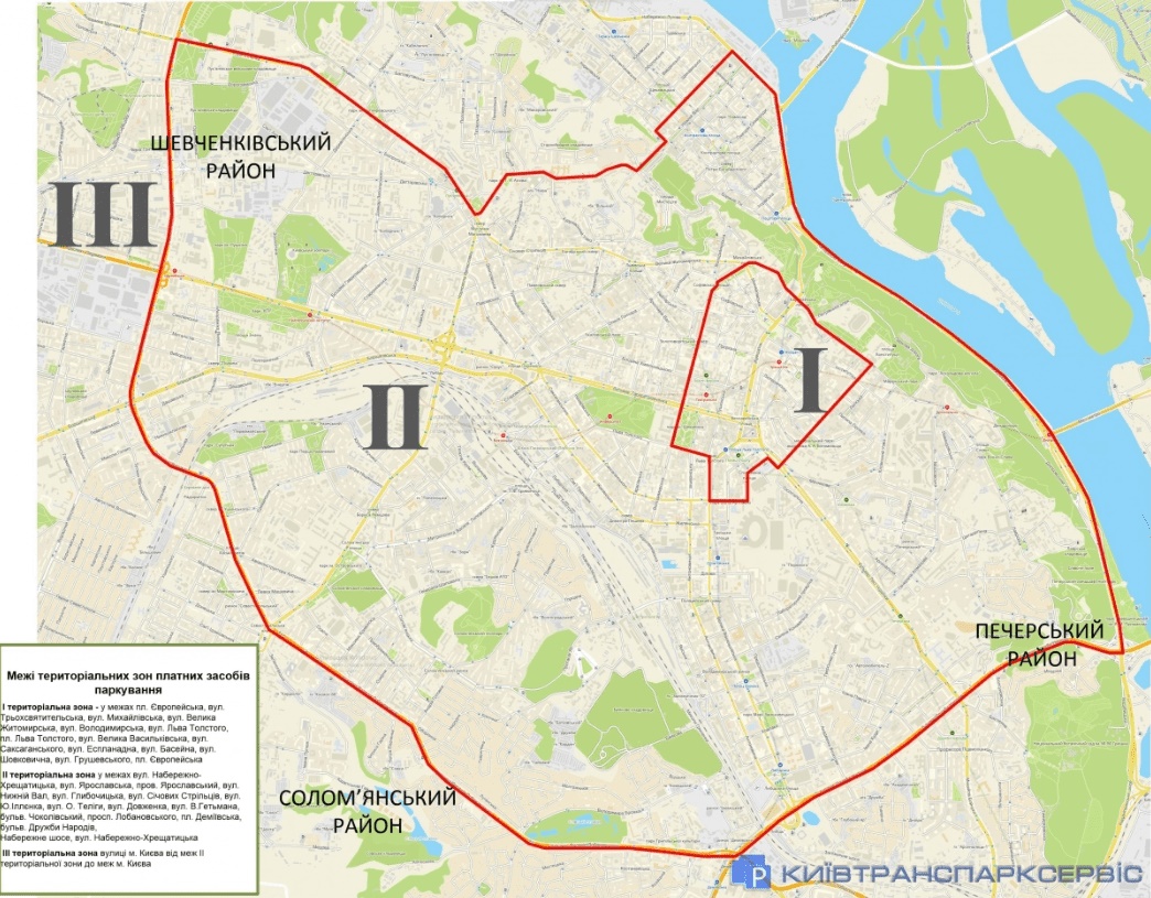 Стоимость парковки за один час на отведенных платных парковках Киевтранспарксервиса в зависимости от зоны парковки установлена в размере: