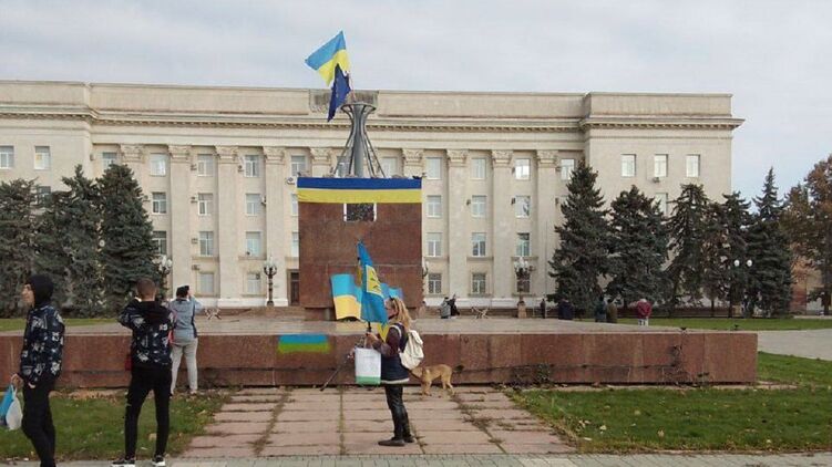 Херсонцы с утра вышли на центральную площадь встречать ВСУ. Фото: Телеграм