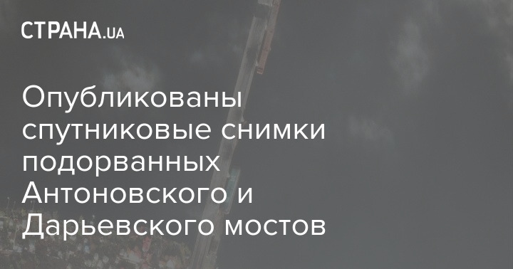 Опубликованы спутниковые снимки подорванных Антоновского (через Днепр) и Дарьевского (через Ингулец) мостов в Херсонской области.