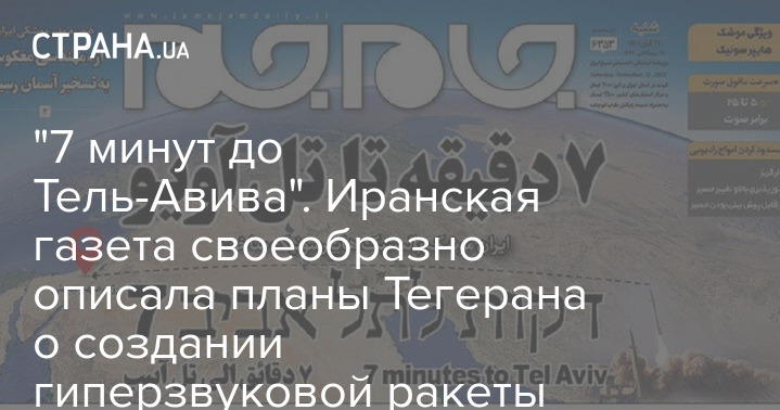 Заявление о создании иранской гиперзвуковой ракеты своеобразно проиллюстрировала иранская газета Jam-e-Jam. На первой полосе - огромный заголовок "7 минут до Тель-Авива", именно столько потребуется новой ракете, чтобы достичь Израиля с территории Ирана.