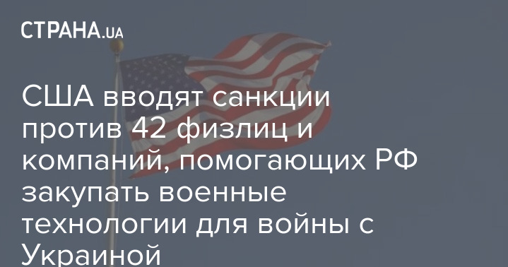 США вводят санкции против 42 физлиц и компаний, помогающих РФ закупать военные технологии для войны с Украиной
