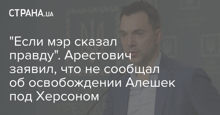 "Если мэр сказал правду". Арестович заявил, что не сообщал об освобождении Алешек под Херсоном