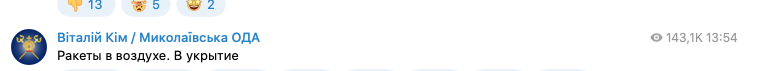 О вылете ракет предупредил николаевский губернатор Виталий Ким.