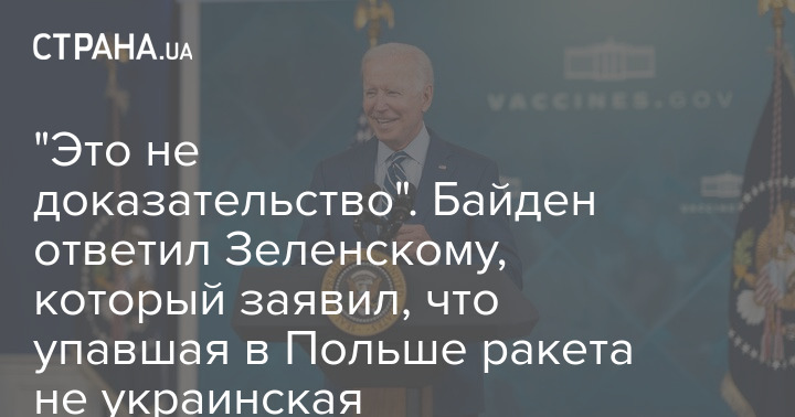 Байден сказал, что траектория полета ракеты свидетельствует о том, что она вряд ли была выпущена из России. Когда же его спросили о комментарии Зеленского по этому поводу, он ответил журналистам: "Это не доказательство".