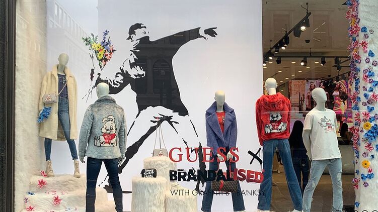 Изначально Guess рекламировал новую капсульную коллекцию как коллаборацию с Brandalised, у которого есть лицензия на использование граффити Бэнкси. Марка предлагает поклонникам художника различные предметы одежды и аксессуары с его работами.
