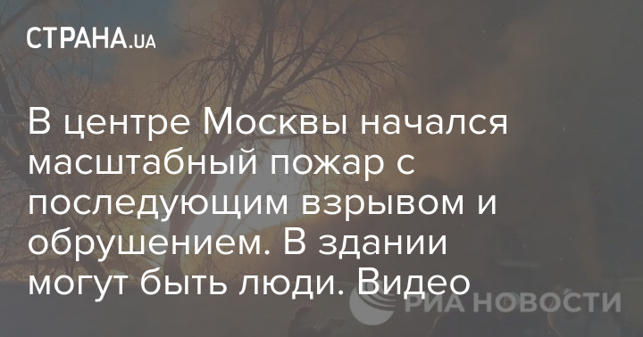 В центре Москвы начался масштабный пожар с последующим взрывом и обрушением. В здании могут быть люди. Видео