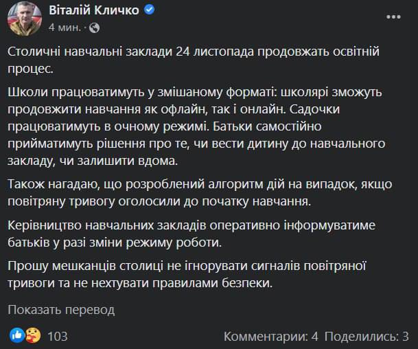 11.05 Киев может ждать "худшая зима со времен Второй мировой войны" из-за отключения электроэнергии, заявил мэр Киева Виталий Кличко в интервью Bild.