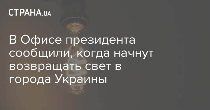 В Офисе президента сообщили, что свет в города Украины будут постепенно возвращать завтра с утра.