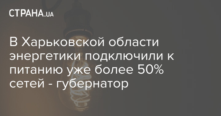 В Харьковской области энергетики подключили к питанию уже более 50% сетей. Об этом сообщил глава Харьковской ОВА Олег Синегубов в своем телеграм-канале.