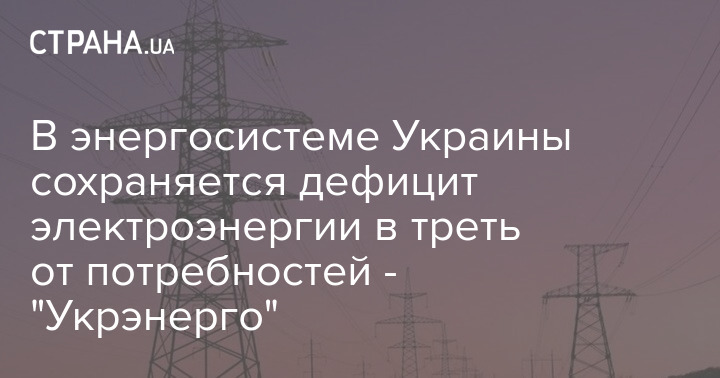 В энергосистеме Украины сохраняется дефицит электроэнергии в треть от потребностей - "Укрэнерго"