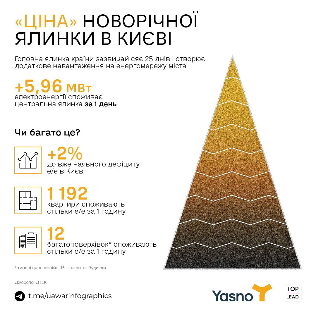 Главная елка страны будет лишена подсветки, что сэкономит свет для 12 многоэтажек. Инфографика от Yasno