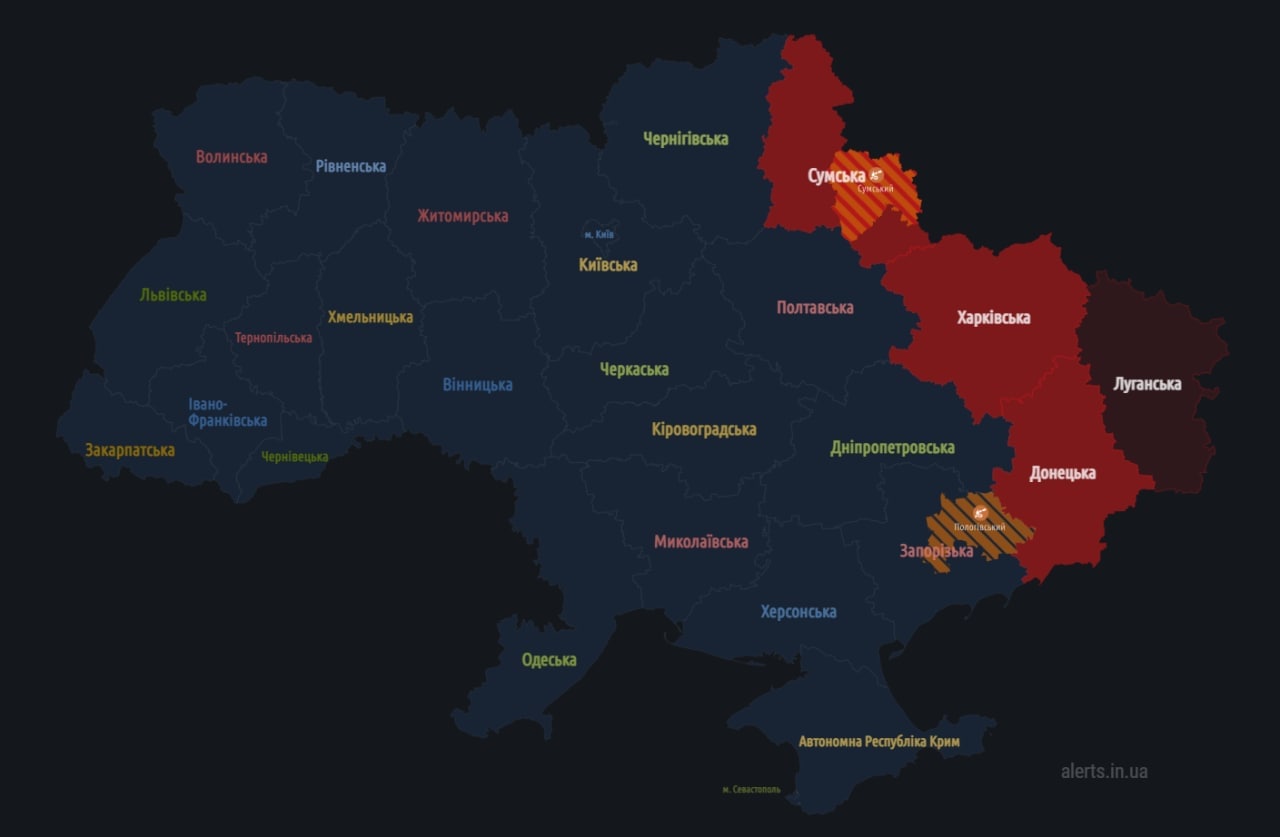 09.10 В ряде областей Украины звучит воздушная тревога.