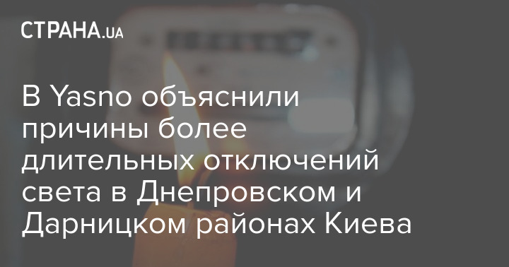 В Yasno объяснили причины более длительных отключений света в Днепровском и Дарницком районах Киева