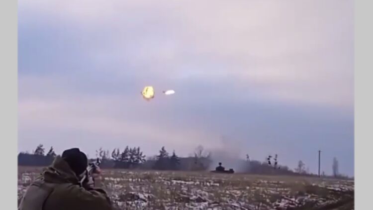 На видео можно заметить падение сбитой российской ракеты после работы установки.
