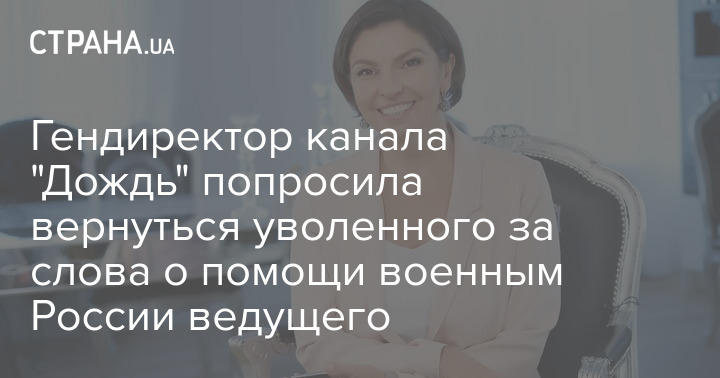 Гендиректор канала "Дождь" попросила вернуться уволенного за слова о помощи военным России ведущего