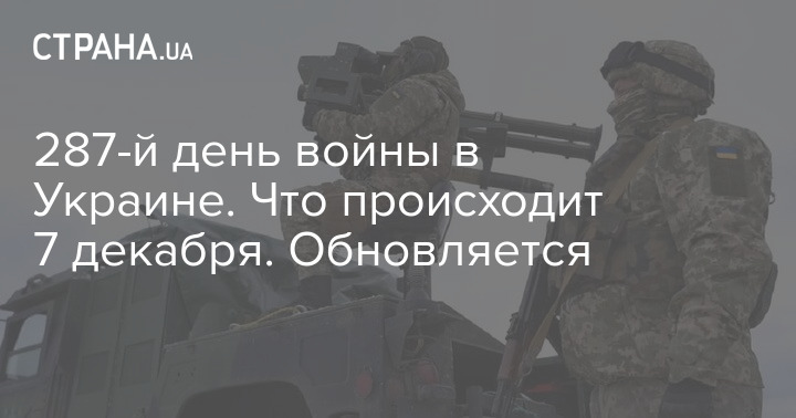 В среду, 7 декабря, в Украине идет уже 287-й день войны с РФ.