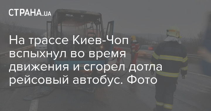 На трассе Киев-Чоп вспыхнул во время движения и сгорел дотла рейсовый автобус. Фото