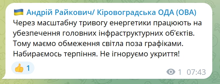 Свет на случай российских ударов отключают и в Кировоградской области.