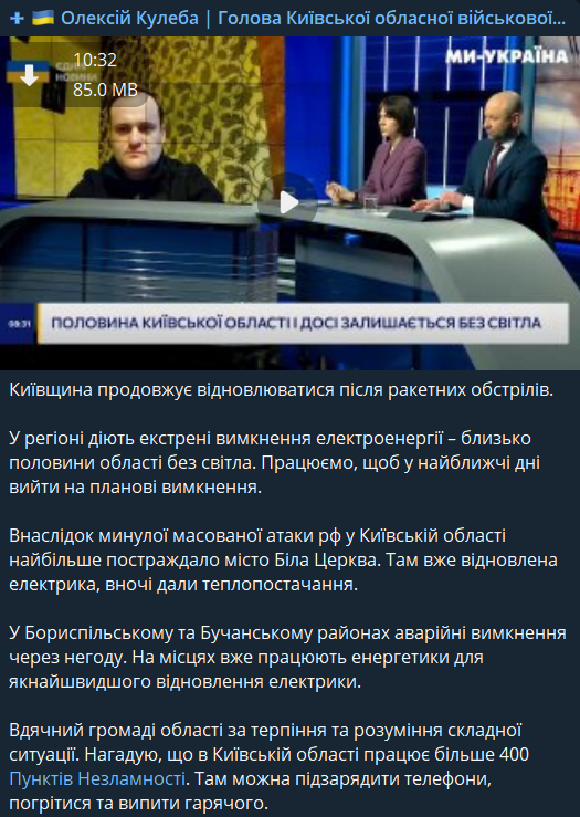 Об этом рассказал в эфире телемарафона глава Киевской областной военной администрации (ОВА) Алексей Кулеба.