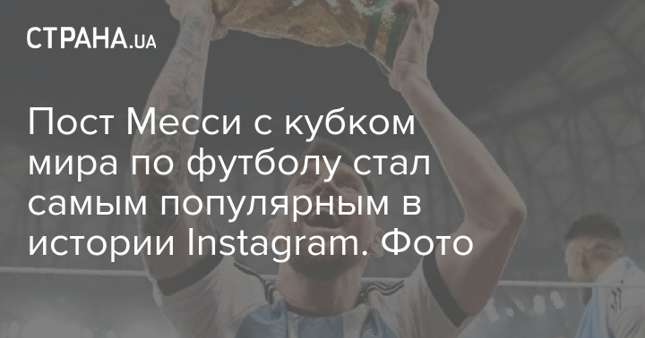 Пост Месси с кубком мира по футболу собрал более 55 млн лайков и стал самым популярным в истории Instagram.